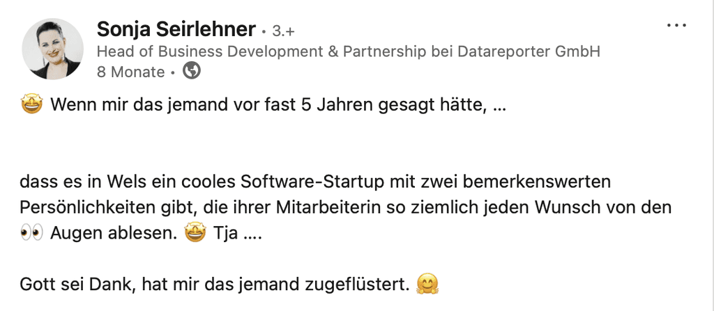 Und du liebst das Thema DSGVO und du interessierst dich für innovative Softwareentwicklung genauso wie wir? Dann zögere nicht länger und schick uns deine Bewerbung. Werde Teil unseres Teams und gestalte die digitale Zukunft mit uns.